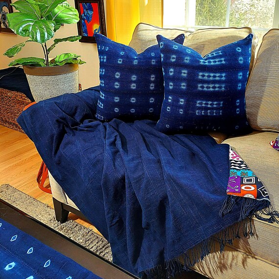 Indigo Mud Cloth Throw Blanket Navy Blue Hand Dyed West Etsy Uk