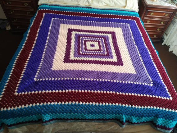 Throw Blanket Hand Made By Crochet Vintage And Retro Perfect Etsy Uk